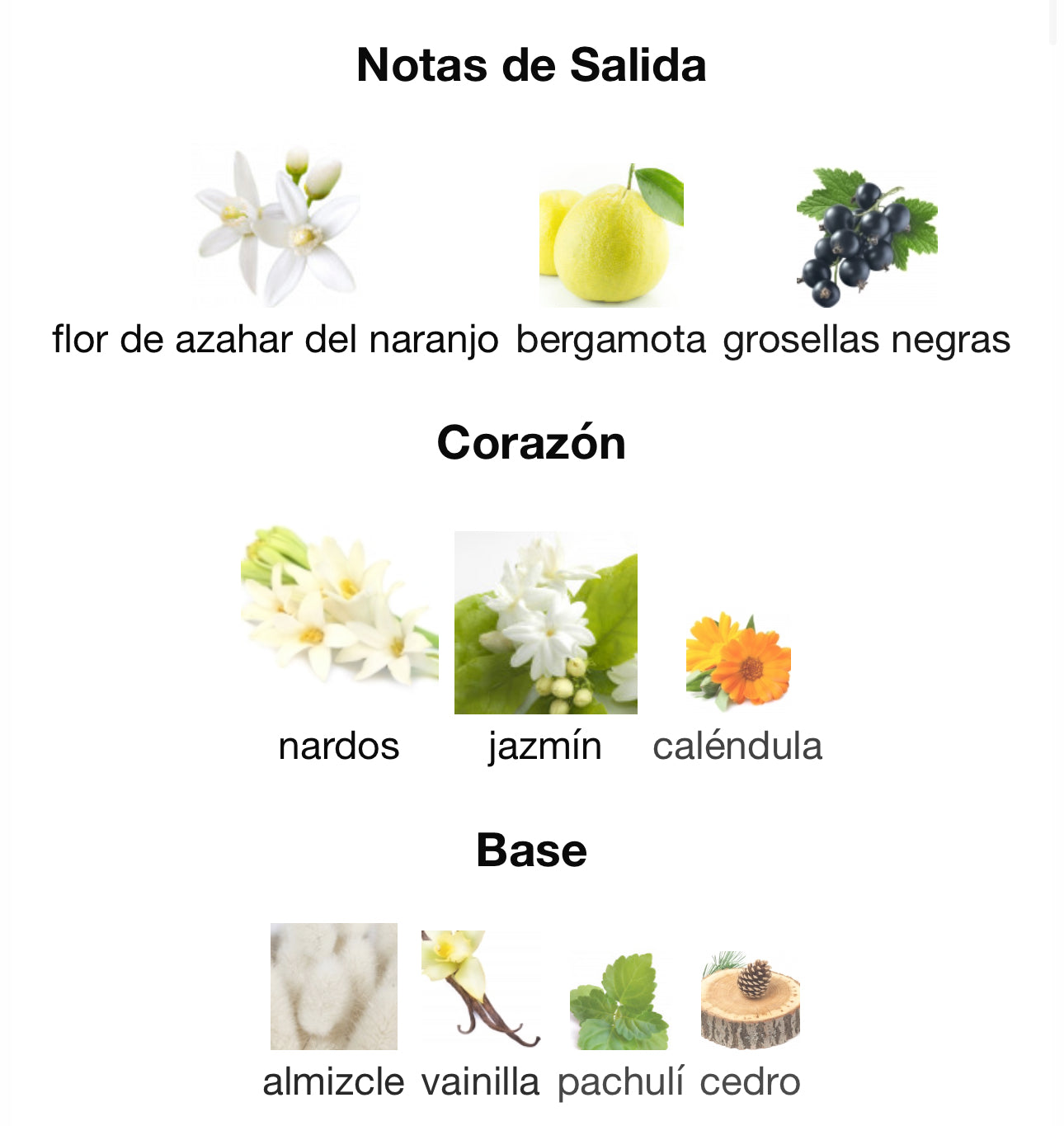 flor de azahar, bergamota, grosellas negras