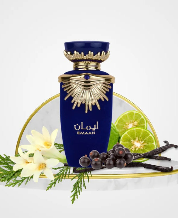 Emaan de Lattafa combina la dulzura de frutos jugosos con flores suaves y envolventes, creando una apertura luminosa y femenina. Su carácter cremoso aporta calidez y una sensación delicada que se mantiene durante todo su desarrollo.