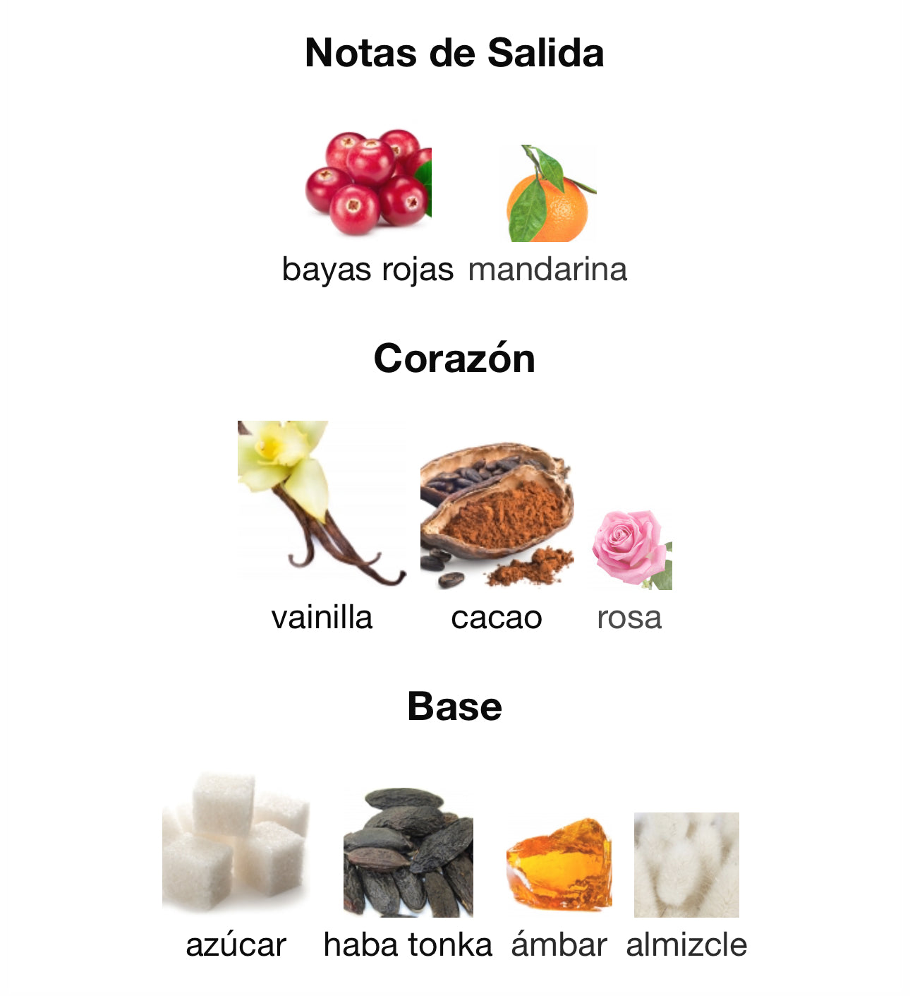 azúcar, haba tonka, ámbar, almizcle