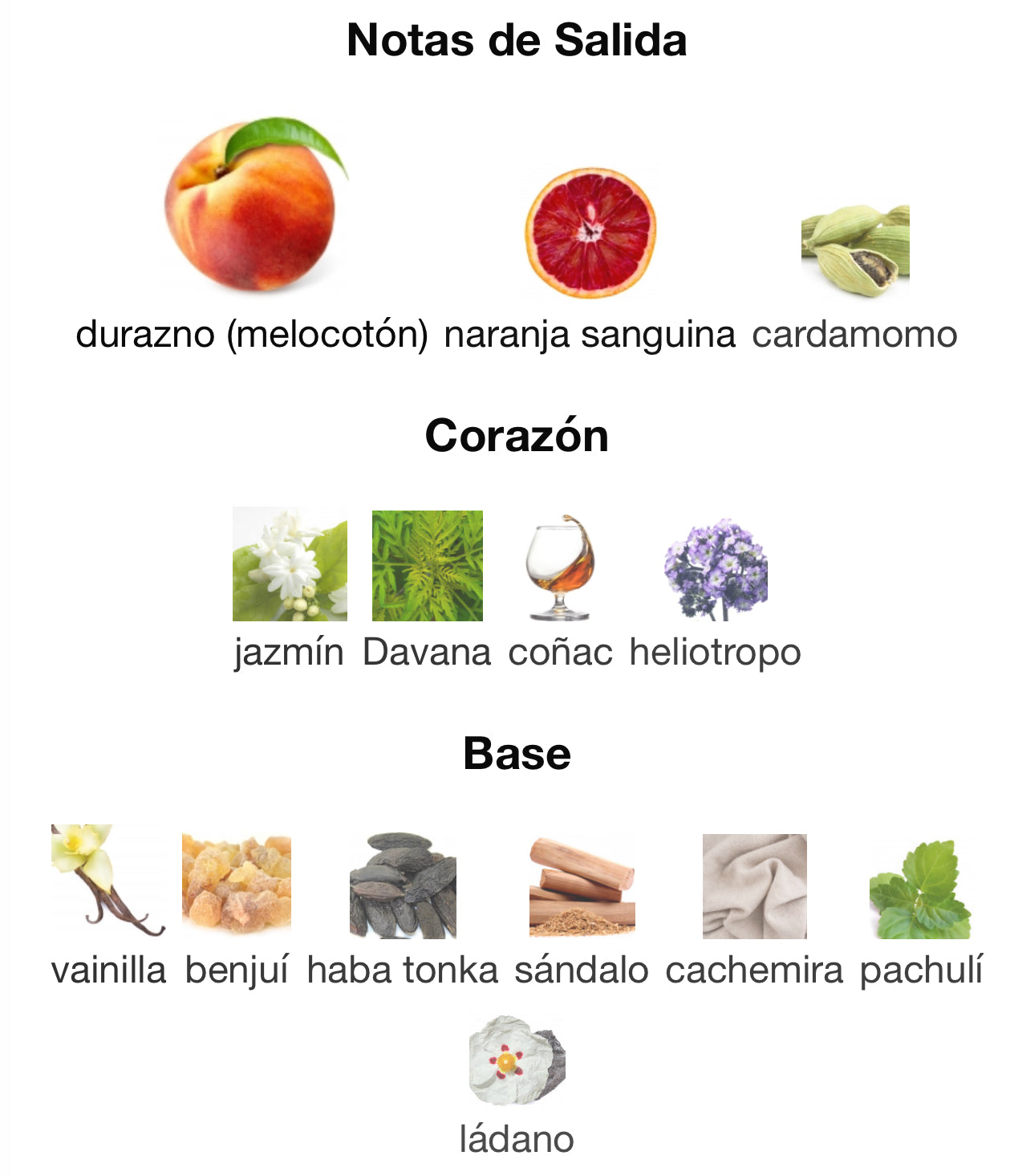 • Aroma principal: Durazno, jazmín, vainilla