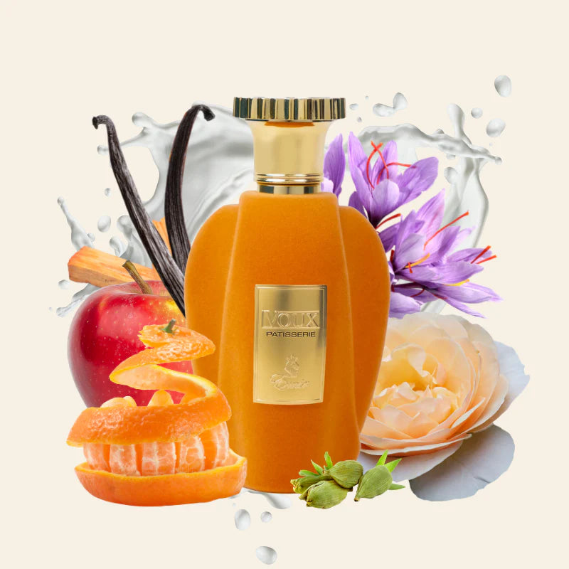 Desde la chispa jugosa de la mandarina con cardamomo, pasando por su corazón lechoso de manzana y rosa, hasta la base cremosa de vainilla y sándalo, VOUX PÂTISSERIE es una fragancia que abraza, seduce y deja una estela dulce y elegante.