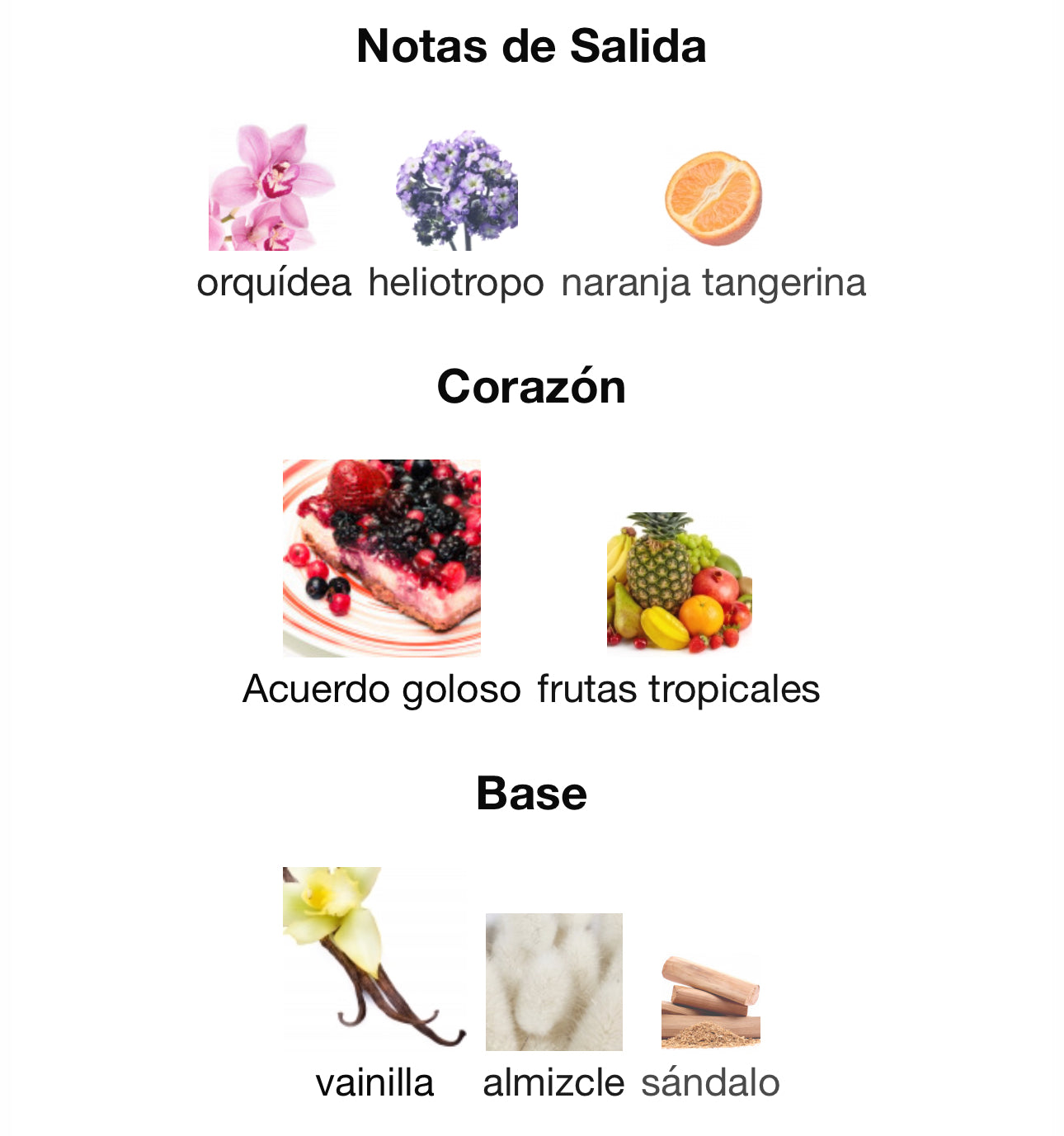 vainilla, almizcle, sándalo
